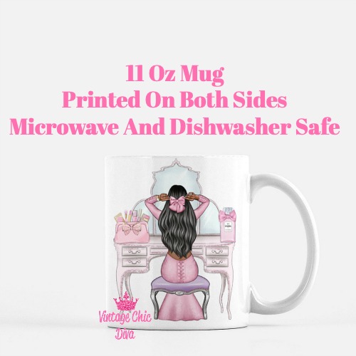 Add a little glam to your life with our Vanity Girl35 Coffee Mug Coffee Mug. Our Vanity Girl35 Coffee Mug Coffee Mug features our Beautiful Vanity Fashion Girl. Also if you want pink handle pink inside please select that option. This coffee mug is perfect to add to your coffee mug collection. The glitter is a design effect not real glitter. This Vanity Girl35 Coffee Mug Coffee Mug would make a great addition to your coffee mug collection. This Coffee Mug is our smaller Size 11 oz coffee mug. It comes in White with a White Handle, or White with a Pink Handle and Pink inside. We have lots of Fashion, Beauty, Quote and so many coffee mugs to choose from. You can even use our coffee mugs to store your makeup brushes, and for the planner lovers, you can store your pens and pencils in them.